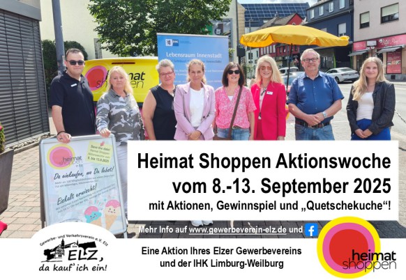 am 9. und 10. September machen viele Ihrer bekannten Elzer Geschäfte in Kooperation mit der IHK Limburg zum mittlerweile vierten Mal bei den „Heimat Shoppen“-Aktionstagen mit! Inhabergeführte